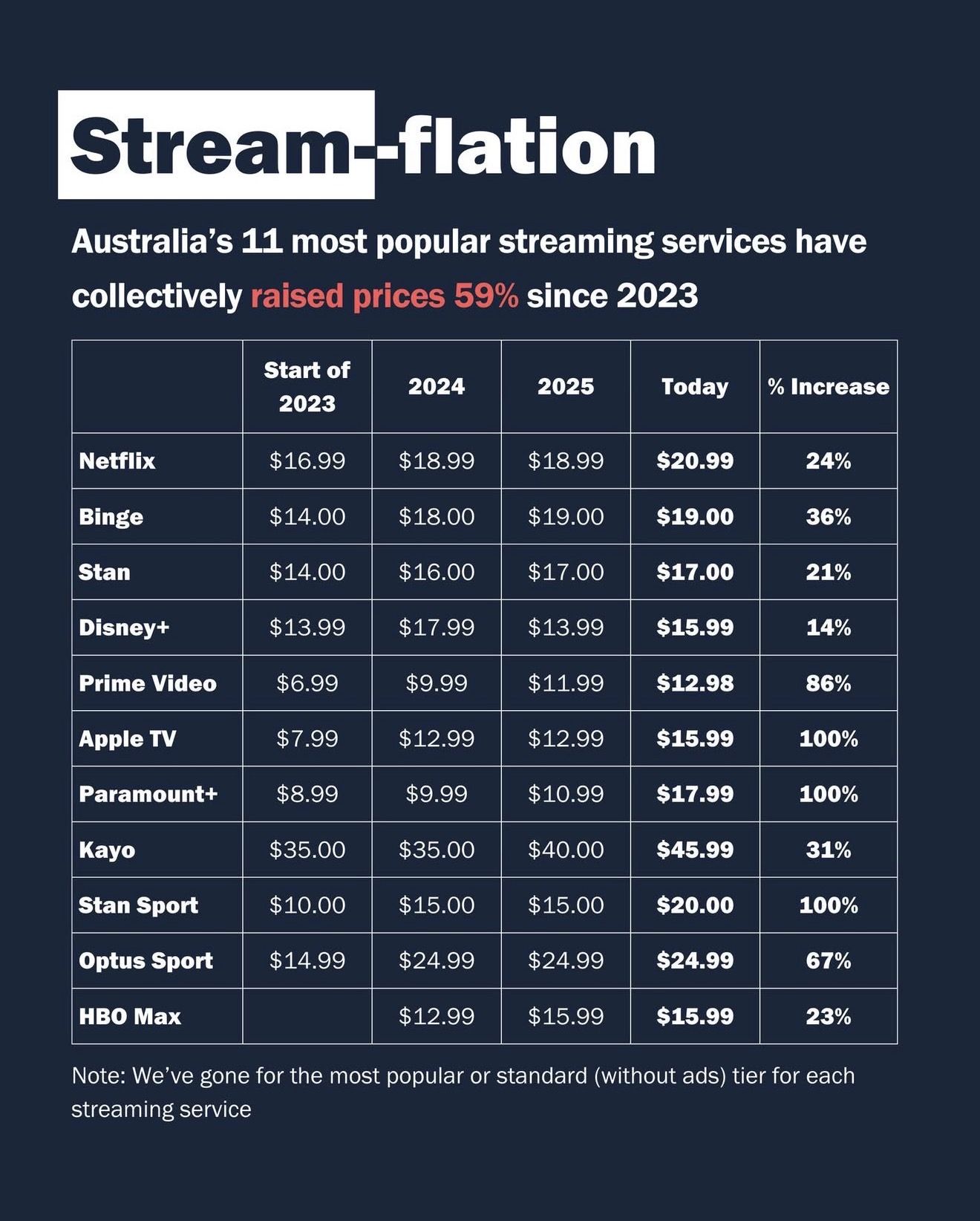 This is especially so as streaming platforms have been mercilessly increasing their charges over recent years. I’ve shared this table by Equity Mates before - it shows just how dramatic these increases have been:
