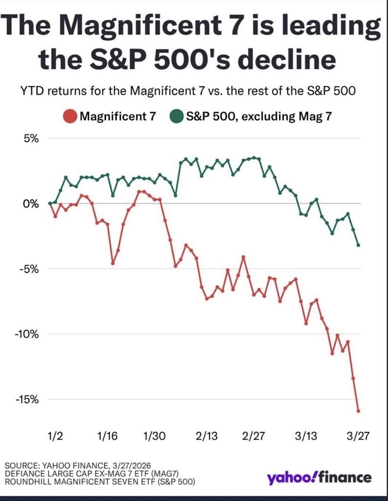So, guess what? While technology stocks drove the market higher last year, this year the Magnificent 7 is dragging the market down.