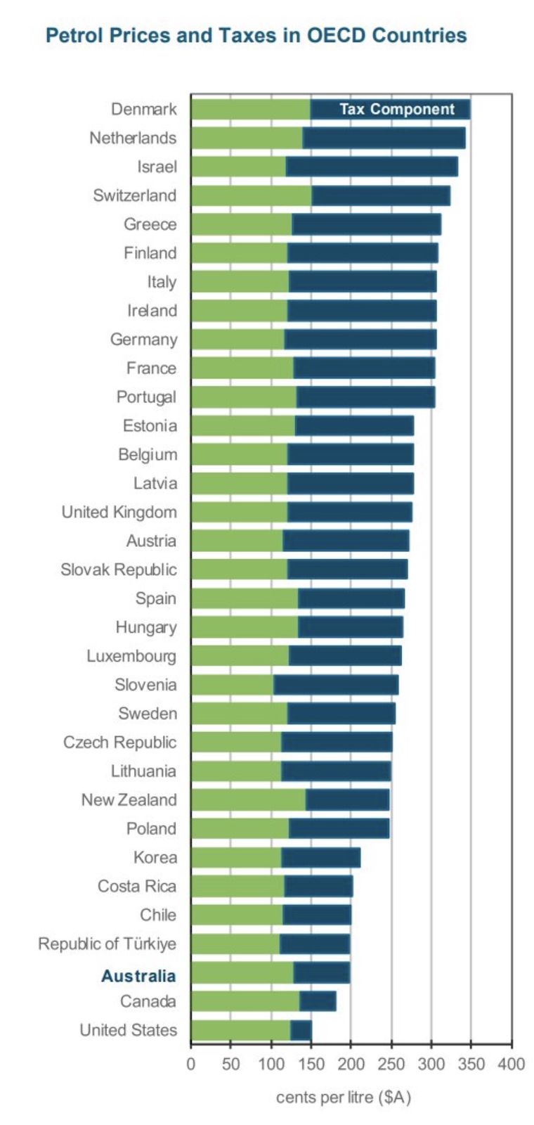 Interestingly, this ranking comes despite us paying a relatively small amount of petrol tax compared with the rest of the world: