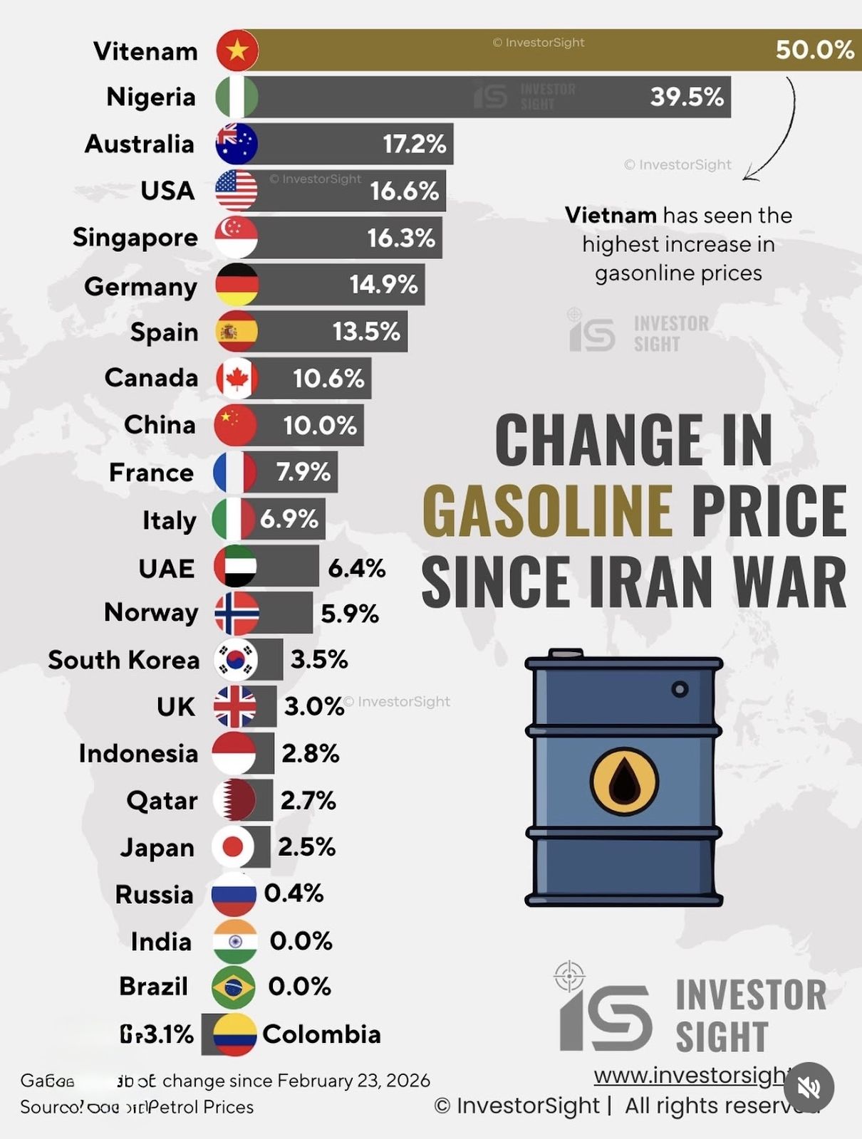 Since the Middle East crisis, Australian petrol prices have risen 17 per cent. We are ranking third globally for fuel increases, even beating the US.