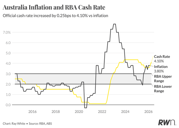 The Reserve Bank did lift interest rates 0.25 per cent this week to 4.1 per cent, adding $94 a month to repayments on a $600,000 home loan. It’s the second consecutive rate rise following the hike at the February board meeting ... and it’s expected there could be a third straight rise at the next RBA board meeting in May.